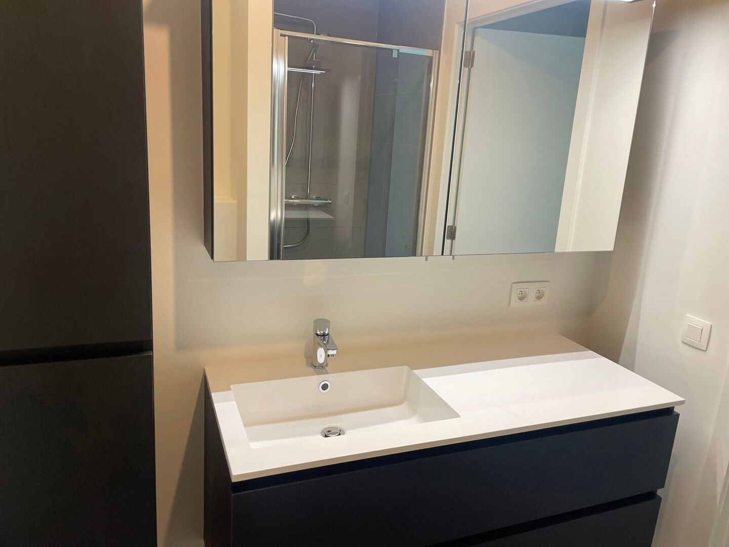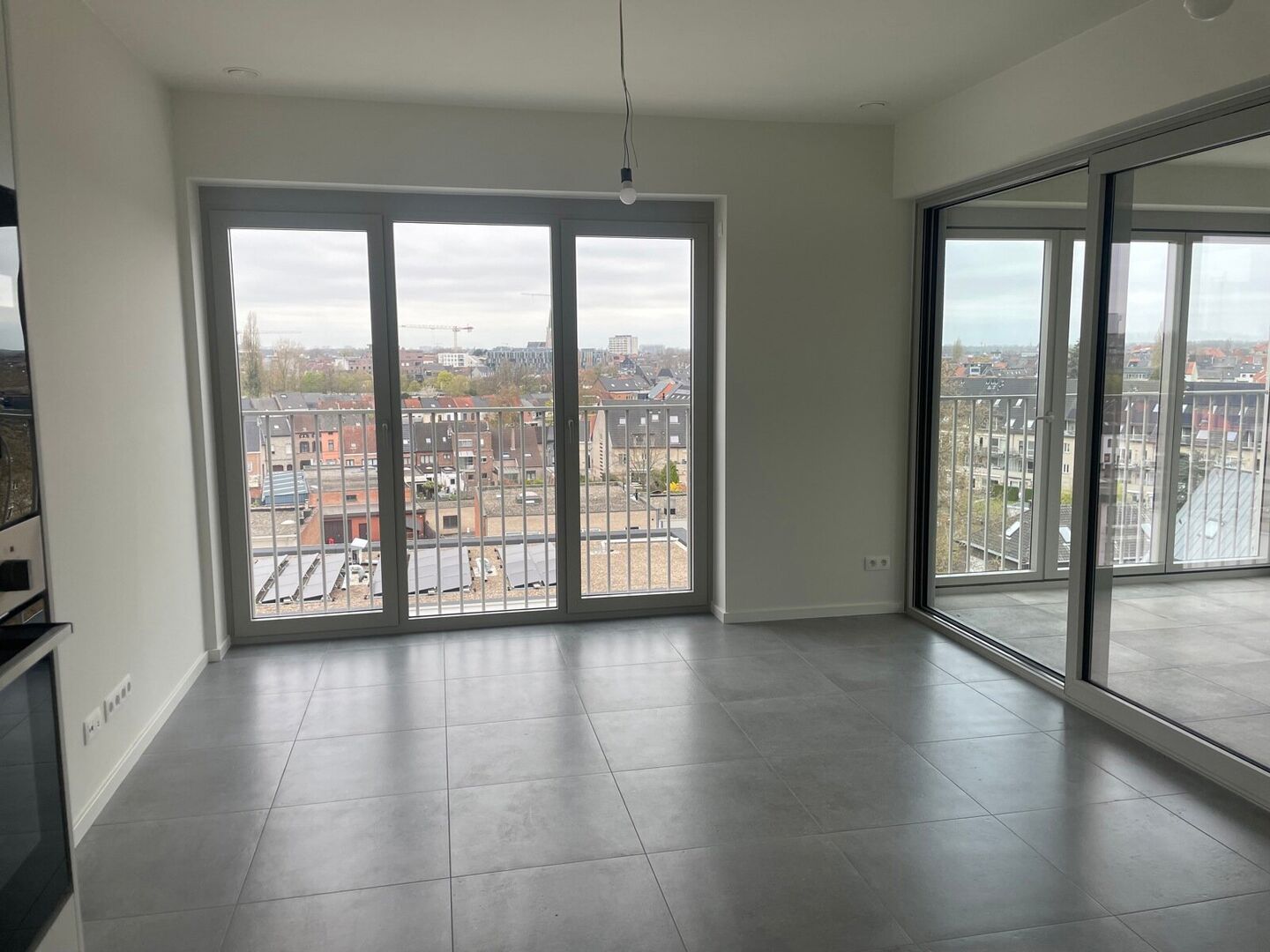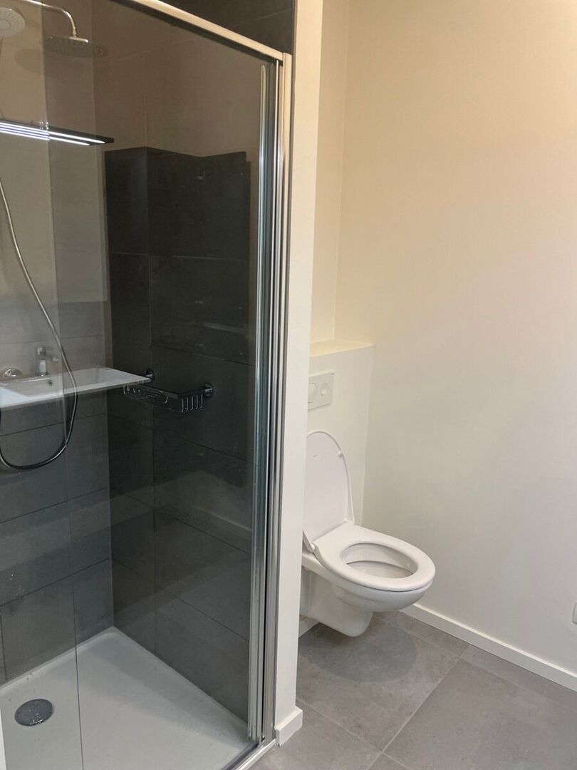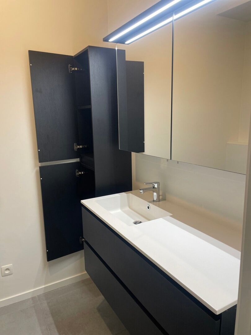 Leemans Immobiliën vous présente cet appartement neuf exceptionnellement écoénergétique, idéalement situé au cœur du centre animé d'Alost. Grâce à sa situation centrale optimale, commerces, hôpital, installations sportives, écoles et transports en commun sont accessibles à pied, pour un confort de vie incomparable.Cet élégant appartement, situé au cinquième étage, offre une magnifique vue panoramique sur la ville. Dès l'entrée, vous découvrirez un hall raffiné donnant accès à une salle de bains moderne, équipée d'une douche à l'italienne, d'un meuble vasque élégant et de toilettes.