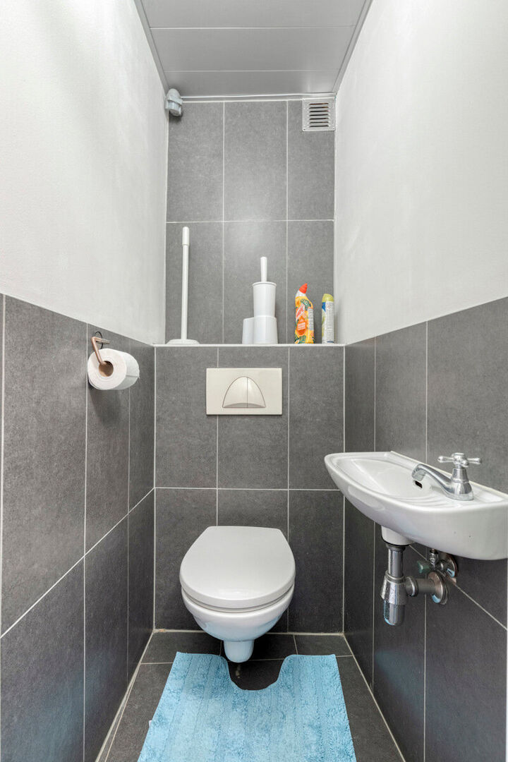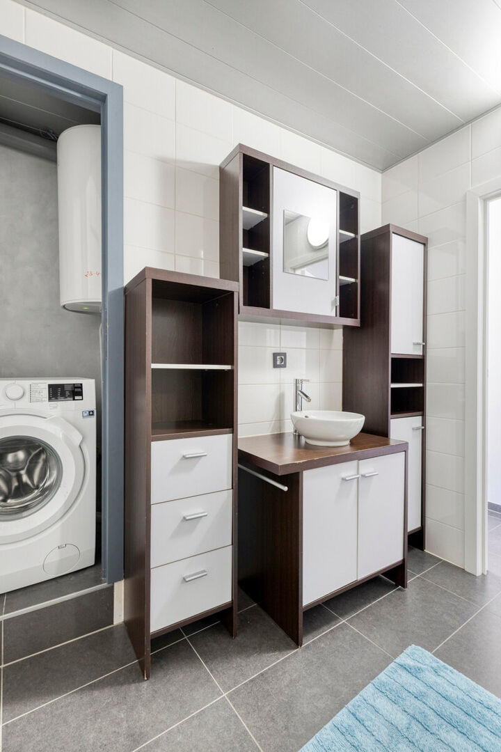 L'appartement se compose d'un hall d'entrée, de deux chambres et d'un séjour lumineux avec cuisine américaine entièrement équipée. Le séjour donne accès à une terrasse spacieuse, parfaite pour profiter du soleil.L'appartement comprend également une salle de bains avec baignoire et lavabo, un cellier et des toilettes séparées.À l'arrière de l'immeuble, au rez-de-chaussée, se trouve un garage fermé, inclus dans le prix de vente.En résumé, un appartement clé en main offrant tout le confort, une terrasse spacieuse et un garage, dans un emplacement particulièrement pratique au cœur de Ninove. Pour plus d'informations : immo@kantoorleemans.be ou 02/306.90.00
