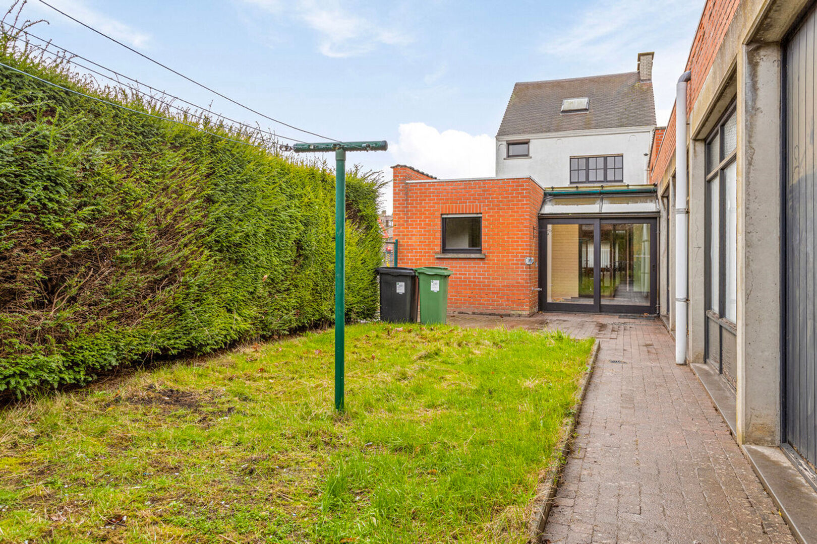 !!!OPBRENGSTEIGENDOM MET ENORM POTENTIEEL!!! Ideale combinatie wonen/werken. Dit gebouw bestaat énerzijds uit een magazijnruimte met sectionaal poort van maar liefst 174m² dewelke dienst kan doen als stockageruimte/magazijn/werkplaats maar eveneens kan ontwikkeld worden (projectgrond) met als toekomstige configuratie: handelszaak op het gelijkvloers en een nieuw te bouwen duplex appartement. Deze stockageruimte betreft een volledige open ruimte dewelke naar keuze nog kan ingedeeld/opgedeeld worden. Daarnaast is er eveneens een zéér ruime ééngezinswoning (bew. opp. van 155m²) met een afzonderlijke inkom. Indeling ééngezinswoning: GV: inkomhal met vestiaire, ruime leefruimte met salongedeelte, afzonderlijke keuken, 2 waterclosets, ruime berging/douchekamer, uitgeruste badkamer, veranda met zicht op het terras en de tuin. 1ste VD: nachthal met 3 ruime slaapkamers. 2de VD: 2 slaapkamers (met vaste trap). INVESTERINGSPAND MET UITERST GUNSTIGE VISIBILITEIT. Meer inlichtingen te verkrijgen op kantoor. dries@kantoorleemans.be - 0497/13.24.80. BEZOEKEN OP AFSPRAAK.