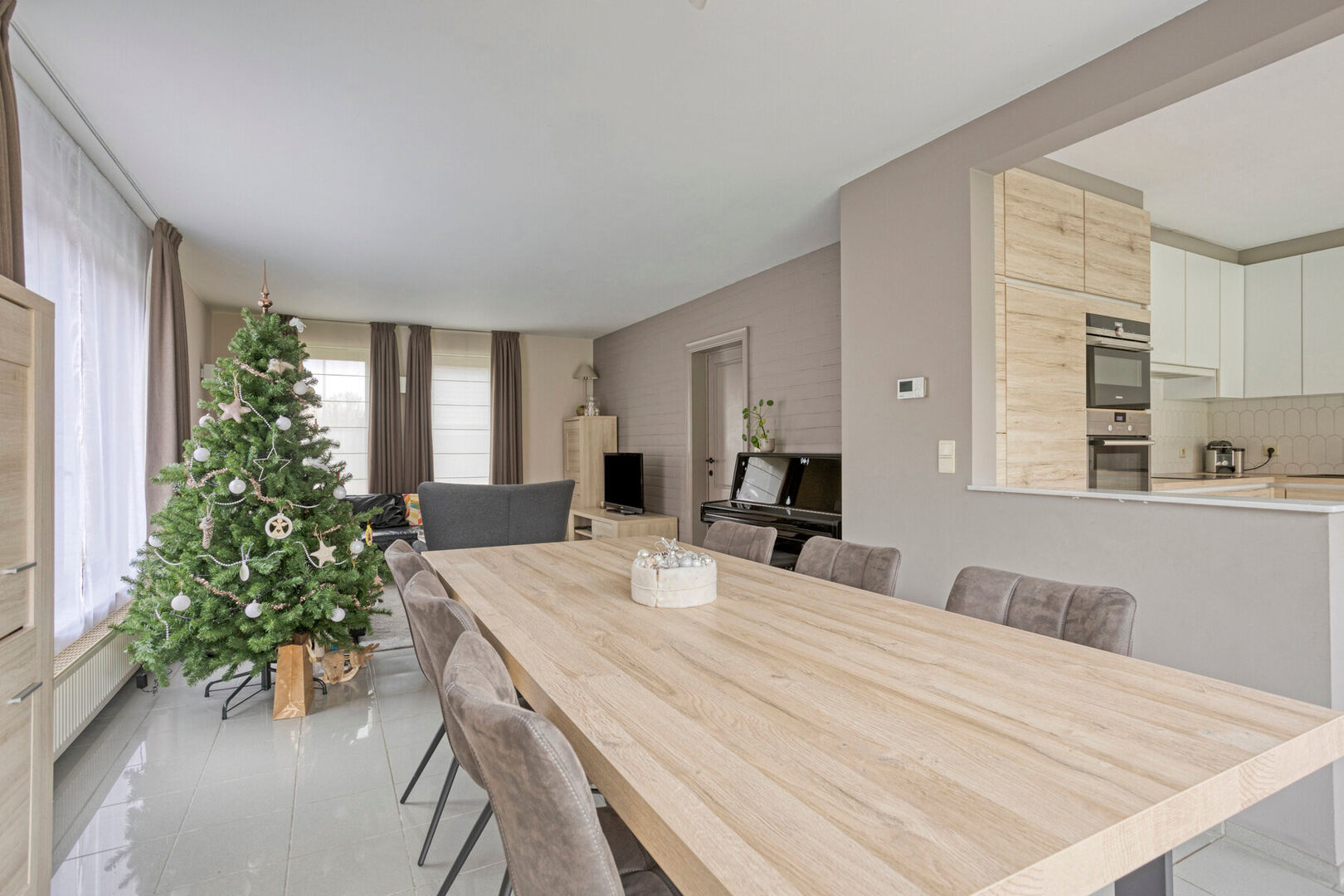 Leemans Real Estate vous présente cette maison clé en main, idéalement située au cœur de Liedekerke. Grâce à son emplacement central, toutes les commodités sont accessibles à pied : commerces, écoles, installations sportives, transports en commun, grands axes routiers et la magnifique forêt de Liedekerke. Dès l'entrée, vous découvrirez un hall avec toilettes invités et vestiaire. Le salon lumineux communique harmonieusement avec la cuisine américaine entièrement équipée, donnant sur le jardin soigné. À côté, vous trouverez un cellier pratique et un garage intégré. De plus, la maison dispose d'une allée pouvant accueillir deux voitures.