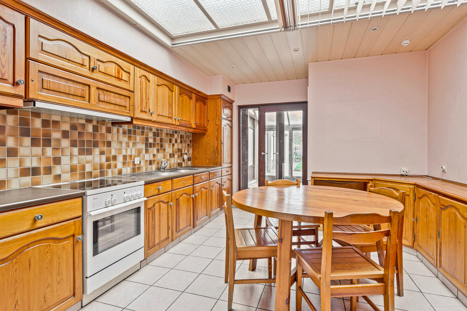 !!!OPBRENGSTEIGENDOM MET ENORM POTENTIEEL!!! Ideale combinatie wonen/werken. Dit gebouw bestaat énerzijds uit een magazijnruimte met sectionaal poort van maar liefst 174m² dewelke dienst kan doen als stockageruimte/magazijn/werkplaats maar eveneens kan ontwikkeld worden (projectgrond) met als toekomstige configuratie: handelszaak op het gelijkvloers en een nieuw te bouwen duplex appartement. Deze stockageruimte betreft een volledige open ruimte dewelke naar keuze nog kan ingedeeld/opgedeeld worden. Daarnaast is er eveneens een zéér ruime ééngezinswoning (bew. opp. van 155m²) met een afzonderlijke inkom. Indeling ééngezinswoning: GV: inkomhal met vestiaire, ruime leefruimte met salongedeelte, afzonderlijke keuken, 2 waterclosets, ruime berging/douchekamer, uitgeruste badkamer, veranda met zicht op het terras en de tuin. 1ste VD: nachthal met 3 ruime slaapkamers. 2de VD: 2 slaapkamers (met vaste trap). INVESTERINGSPAND MET UITERST GUNSTIGE VISIBILITEIT. Meer inlichtingen te verkrijgen op kantoor. dries@kantoorleemans.be - 0497/13.24.80. BEZOEKEN OP AFSPRAAK.