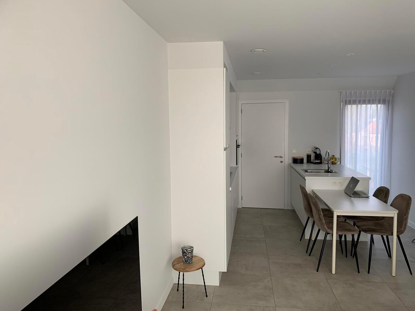 De lichtrijke leefruimte met open keuken vormt het hart van het appartement. De keuken is volledig uitgerust en beschikt over een kookeiland, inductiekookplaat, oven, vaatwasmachine en een koelkast met diepvriesvak. Aansluitend is er een praktische berging met aansluiting voor wasmachine en droogkast.