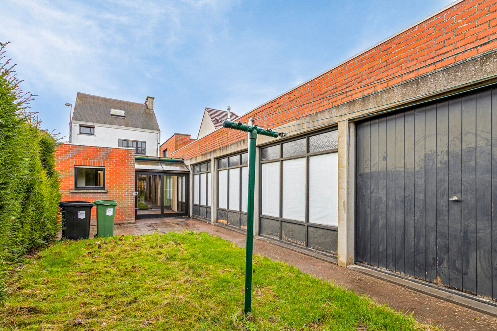 !!!OPBRENGSTEIGENDOM MET ENORM POTENTIEEL!!! Ideale combinatie wonen/werken. Dit gebouw bestaat énerzijds uit een magazijnruimte met sectionaal poort van maar liefst 174m² dewelke dienst kan doen als stockageruimte/magazijn/werkplaats maar eveneens kan ontwikkeld worden (projectgrond) met als toekomstige configuratie: handelszaak op het gelijkvloers en een nieuw te bouwen duplex appartement. Deze stockageruimte betreft een volledige open ruimte dewelke naar keuze nog kan ingedeeld/opgedeeld worden. Daarnaast is er eveneens een zéér ruime ééngezinswoning (bew. opp. van 155m²) met een afzonderlijke inkom. Indeling ééngezinswoning: GV: inkomhal met vestiaire, ruime leefruimte met salongedeelte, afzonderlijke keuken, 2 waterclosets, ruime berging/douchekamer, uitgeruste badkamer, veranda met zicht op het terras en de tuin. 1ste VD: nachthal met 3 ruime slaapkamers. 2de VD: 2 slaapkamers (met vaste trap). INVESTERINGSPAND MET UITERST GUNSTIGE VISIBILITEIT. Meer inlichtingen te verkrijgen op kantoor. dries@kantoorleemans.be - 0497/13.24.80. BEZOEKEN OP AFSPRAAK.