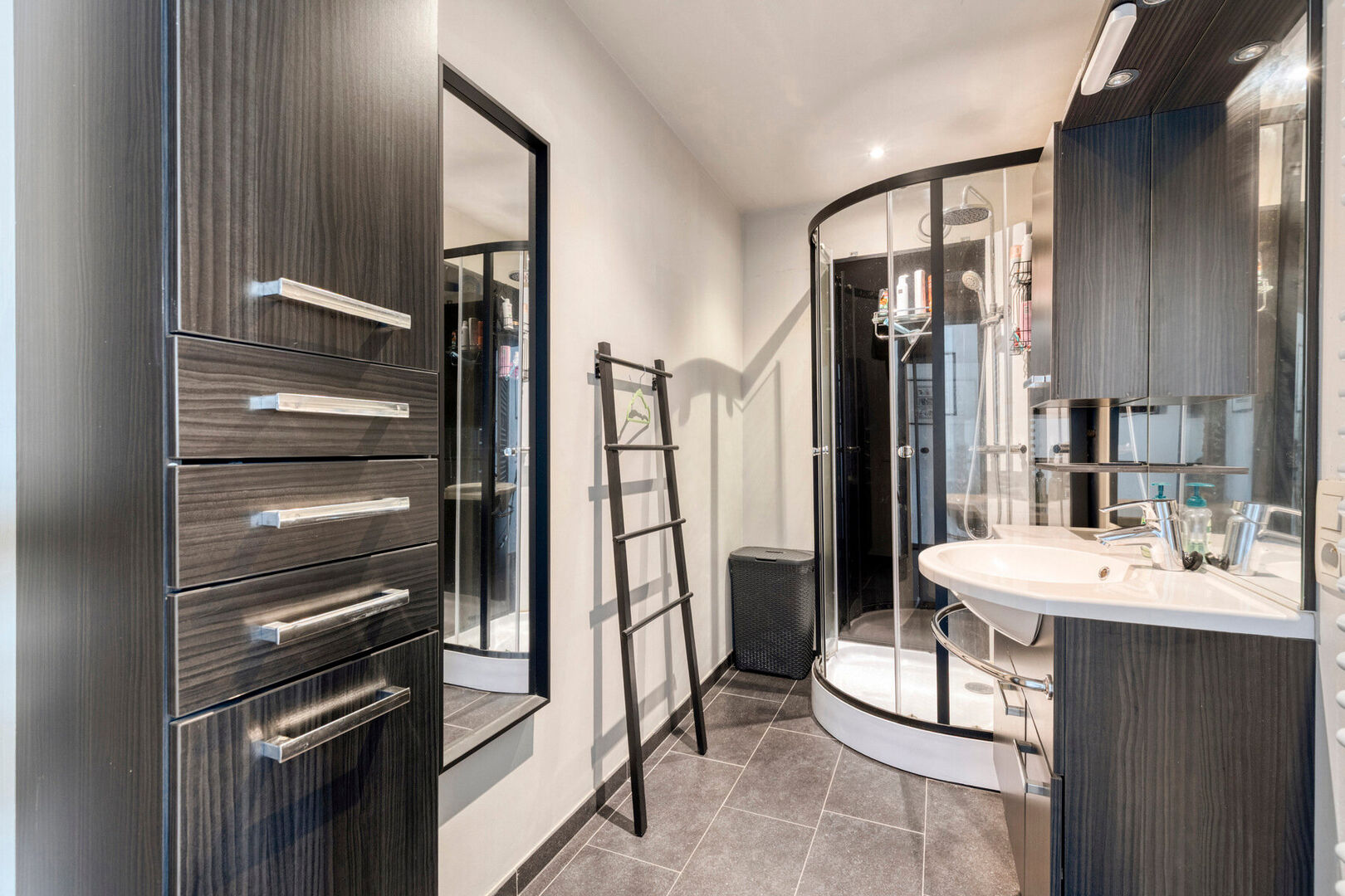 Aansluitend bevindt zich een praktische berging/wasplaats met aparte ingang.Op de eerste verdieping zijn er 3 ruime slaapkamers, twee moderne badkamers met douche, een apart toilet en een extra berging.De zolderverdieping is volledig afgewerkt en ingericht als derde slaapkamer met dressing.Ook is er nog een berging/hobby ruimte en een aparte wc.